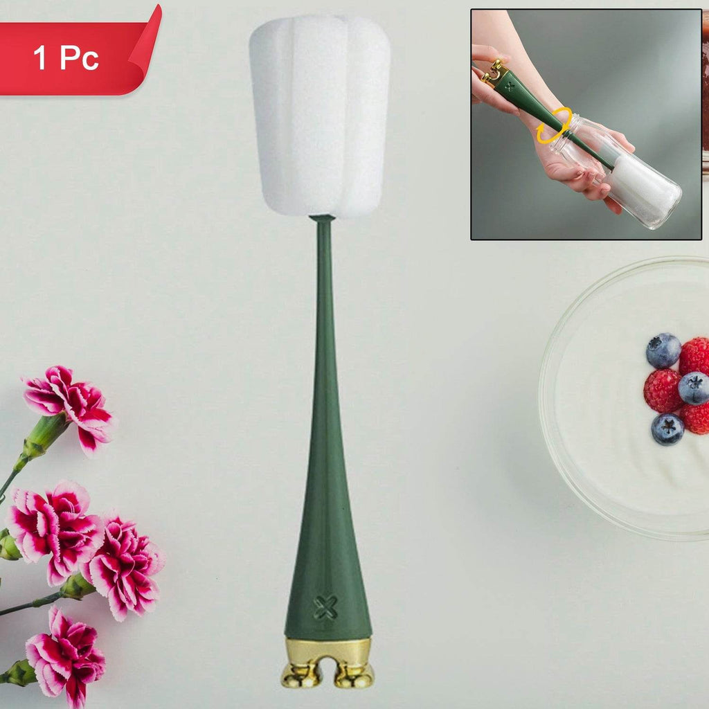 Multifunctional Silicone Bottle Cleaning Foam Brush with Plastic Long Handle for Cups, Mugs, Kettles, Wine, Glasses & Baby Bottles, Vacuum Cups And Water Cups  Long Handle Sponge Bottle Brush (1 Pc)