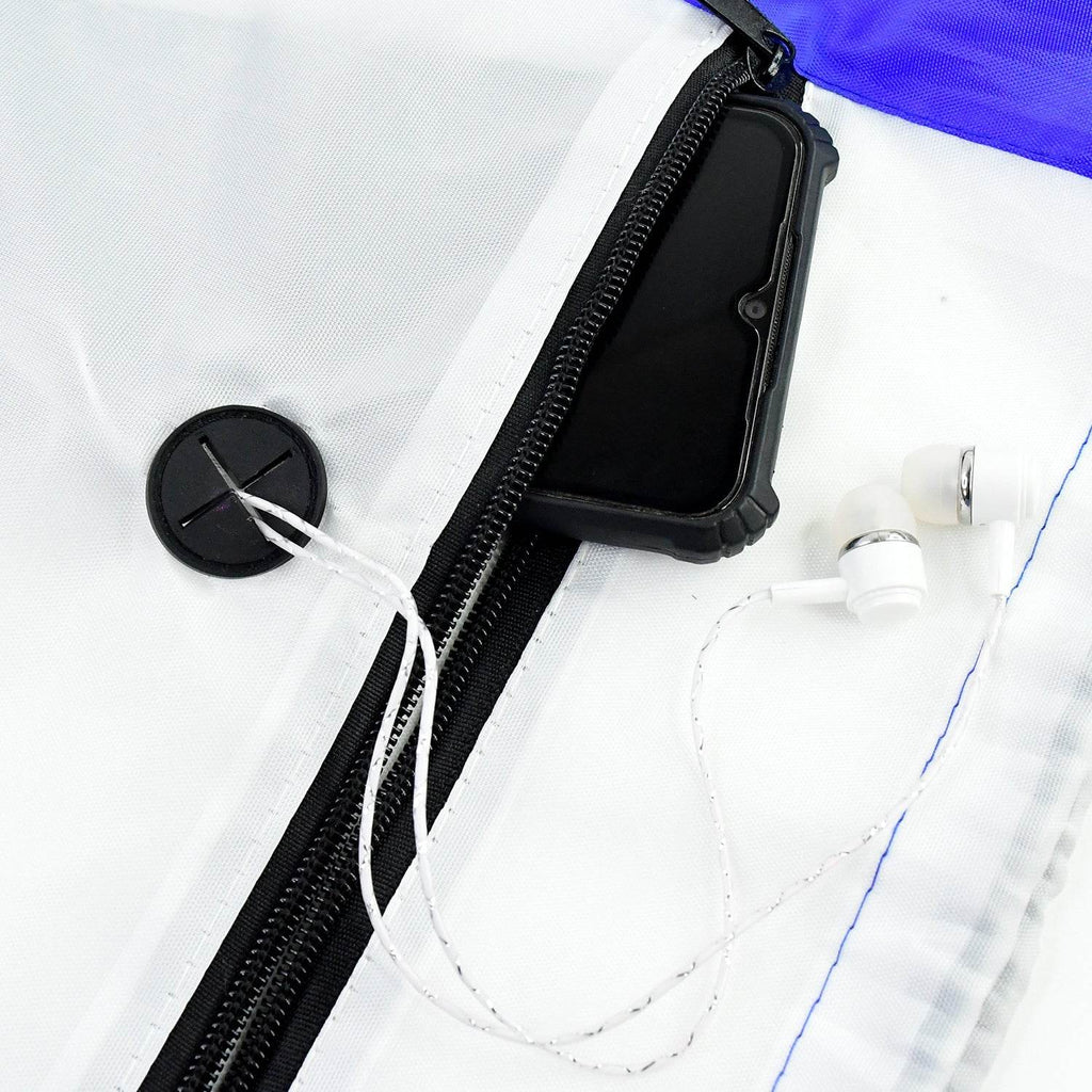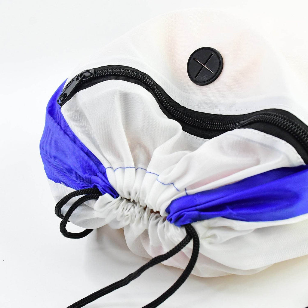 Premium Drawstring Gym Bag with Zipper Pocket and Earphone Port – Lightweight Waterproof Sports Backpack for School, Travel, Gym, Hiking & Daily Use – Stylish Blue and White Unisex Carry Sack