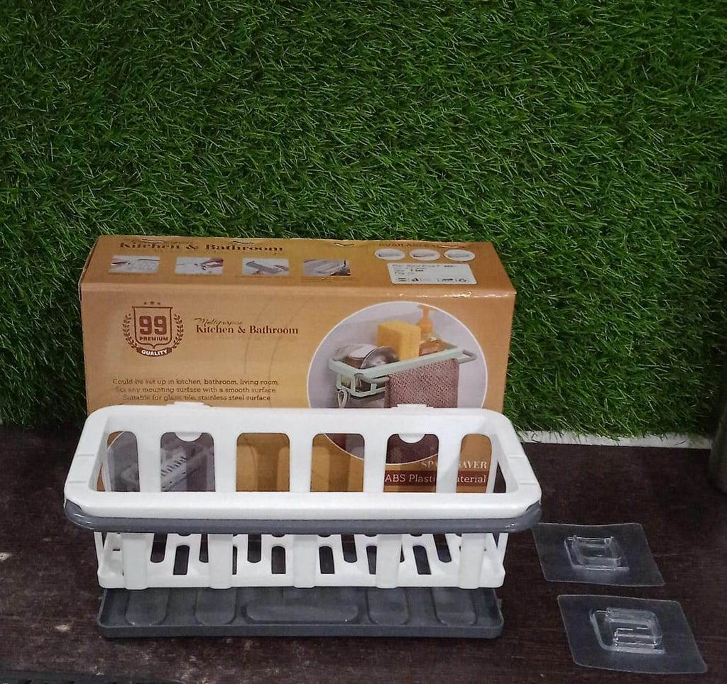 8788 Multipurpose Platic Hanging Drain Rack Retractable Sponge Storage Hanging Rack With Adhesive Hook for Kitchen and Bathroom Dishcloth Holders Basket Drying Tray Organizer