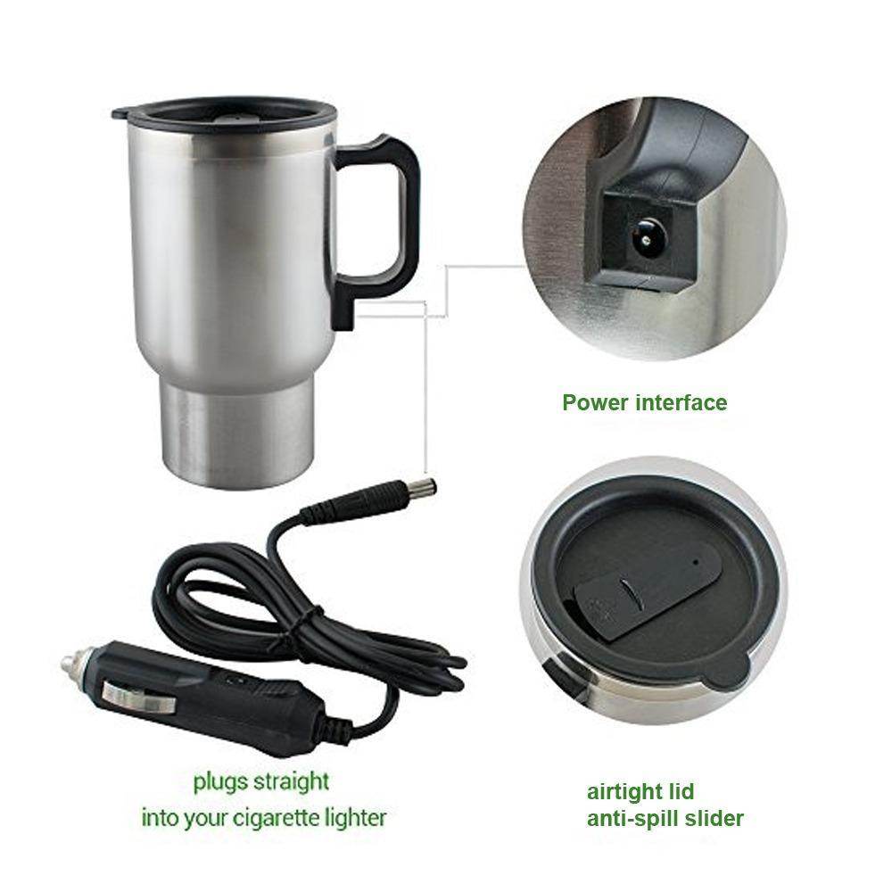 - 12V Car mug sits snugly in your car cupholder and plug, Double wall Car Electric Mug use car battery for Heating