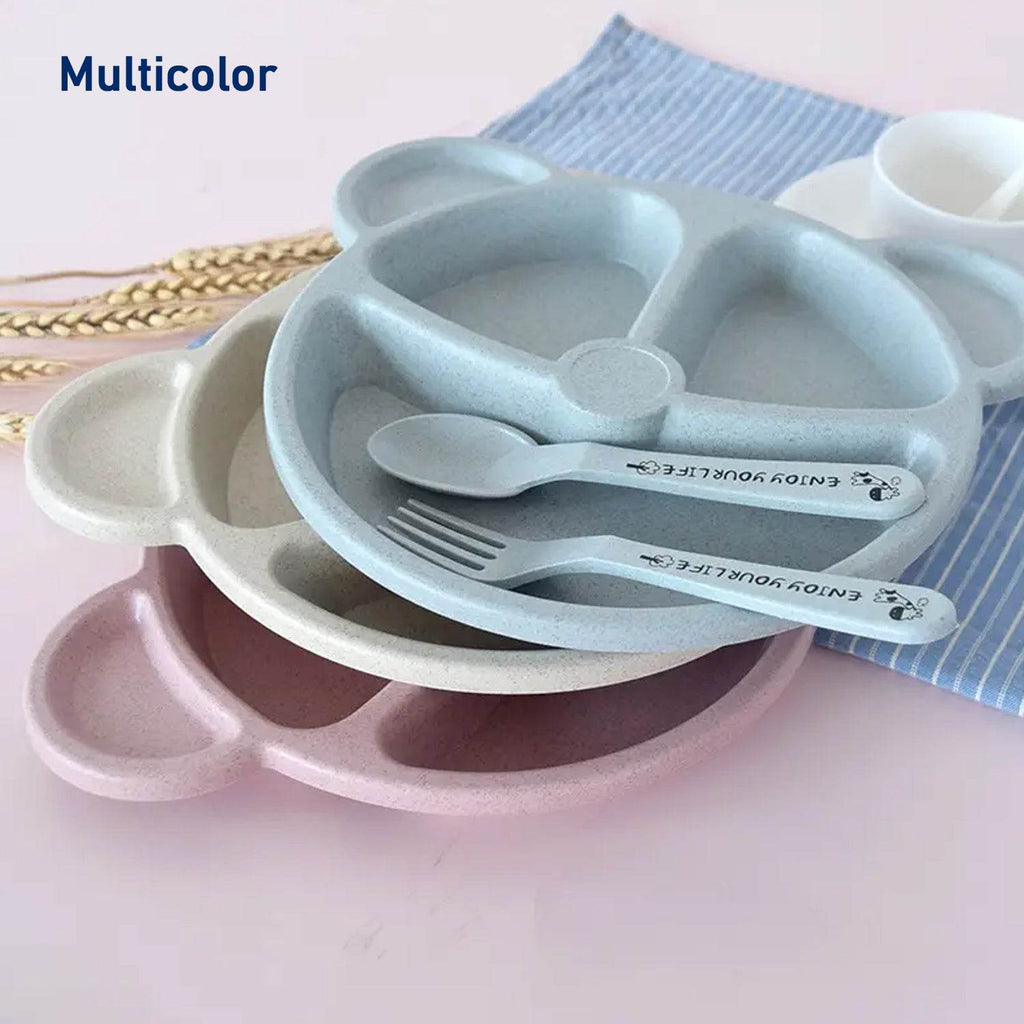 Kids 3 Compartment Food Tray / Plates With Spoon & Fork Cartoon Shape Plate for Kids for Breakfast, Lunch, Dinner and Snack Serving 3 Sectioned Food Plates (1 Set)
