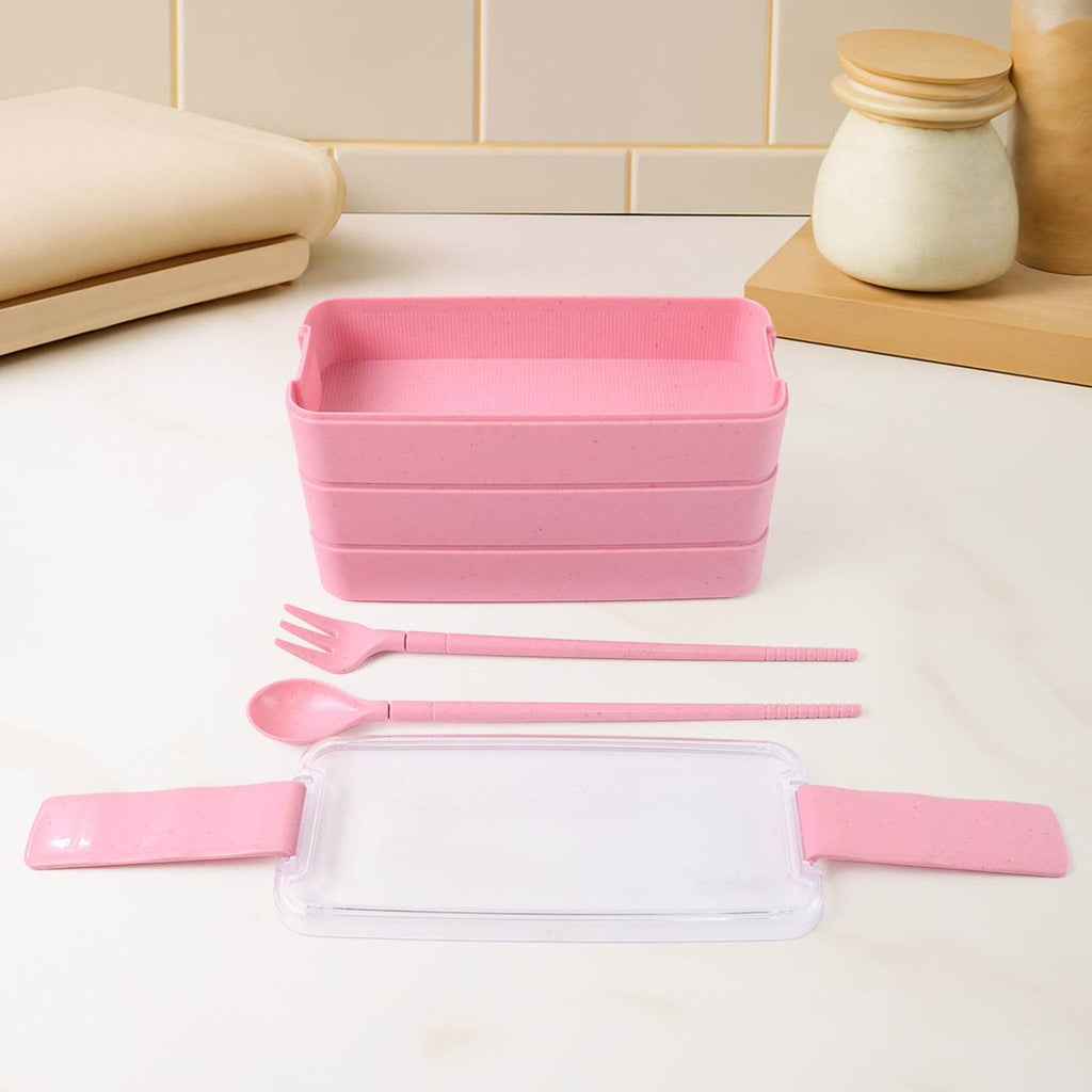 Eco-Friendly 3-Layer Stackable Lunch Box Set with Cutlery – Lightweight BPA-Free Portable Tiffin Box for Office, School & Travel