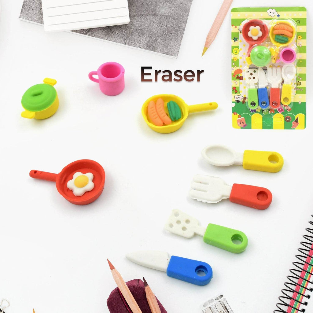- 3D Fancy Colorful Erasers kit is the best return gift options for children, School prize, birthday gifts. All the items in the kit are completely useful. Gifting this multipurpose stationary set to your favourte kid will be a wonderful delight.