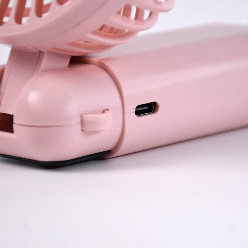 - Compact mini fan with USB charging capability